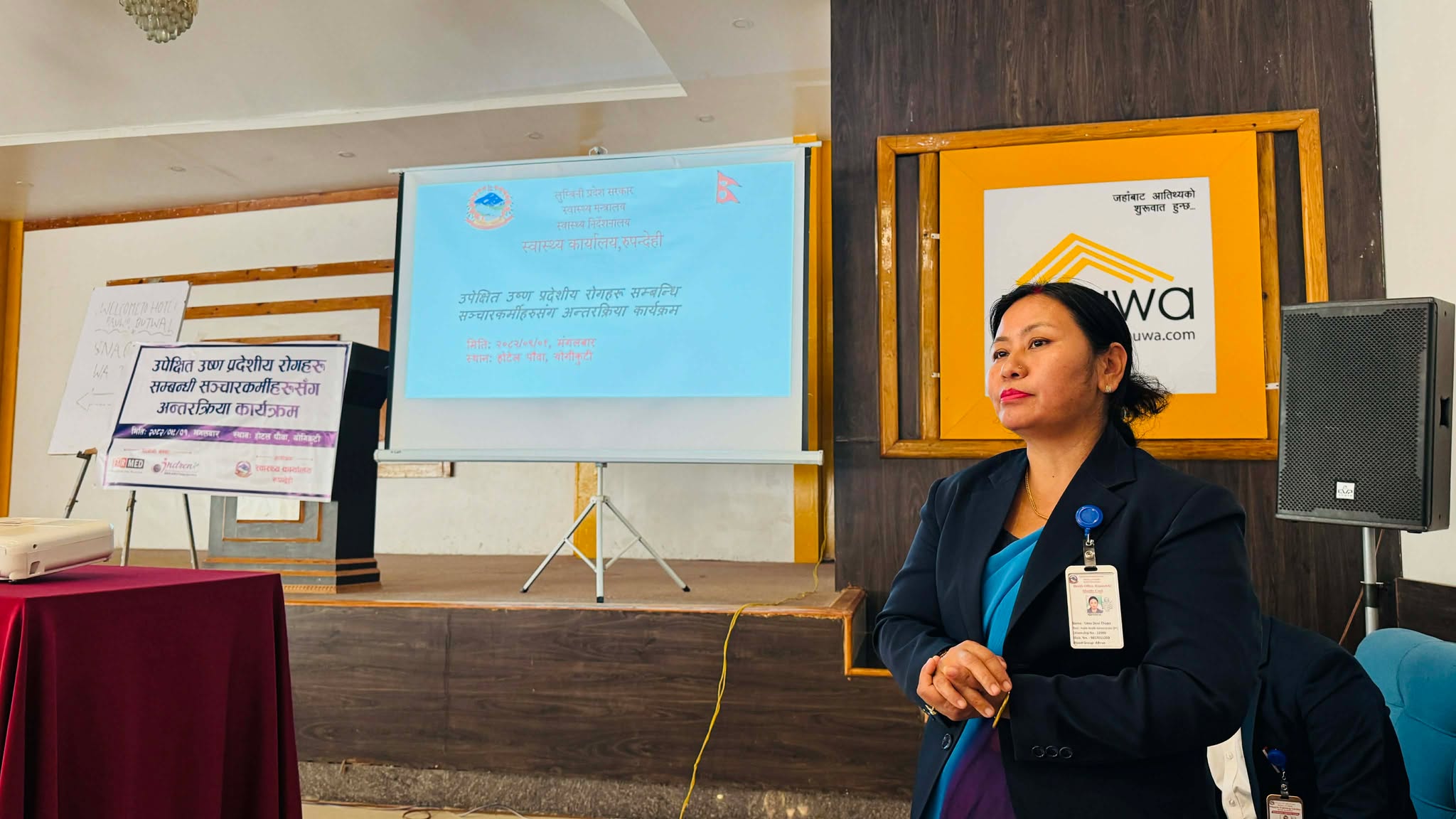 कार्यक्रममा बोल्दै स्वास्थ्य कार्यालय रुपन्देहीकी प्रमुख जनस्वास्थ्य प्रमुख उमादेवी थापाले जिल्लामा उपेक्षित उष्णप्रदेशीय रोगको वर्तमान अवस्था प्रस्तुत गर्दै आगामी दिनमा गर्नुपर्ने प्राथमिकता, चुनौती र सुधारका क्षेत्रबारे जानकारी गराउनु भयो। उहाले समयमै रोग पहिचान, उपचार पहुँच विस्तार र जनचेतनालाई अझ प्रभावकारी बनाउनुपर्नेमा जोड दिनु भयो ।