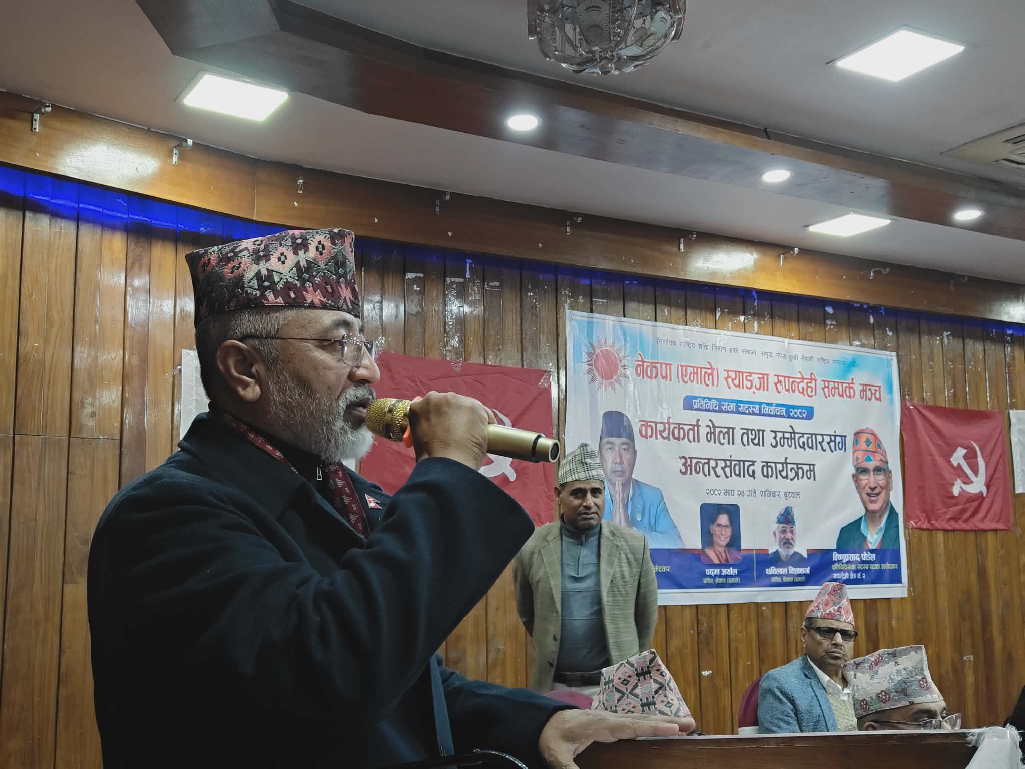 पार्टीका अर्का सचिव छविलाल विश्वकर्माले पार्टीको सङ्गठनलाई थप सुदृढ बनाउँदै विपक्षीका भ्रमहरू चिर्नुपर्नेमा जोड दिनुभयो । उहाले भन्नुभयो, ‘हामीले जिते मात्रै अधुरा रहेका विकासका कामहरूले पूर्णता पाउँछन्, त्यसैले यो निर्वाचन हाम्रो लागि ‘गर या मर’ को स्थिति हो, विश्वकर्माले भन्नुभयो ।